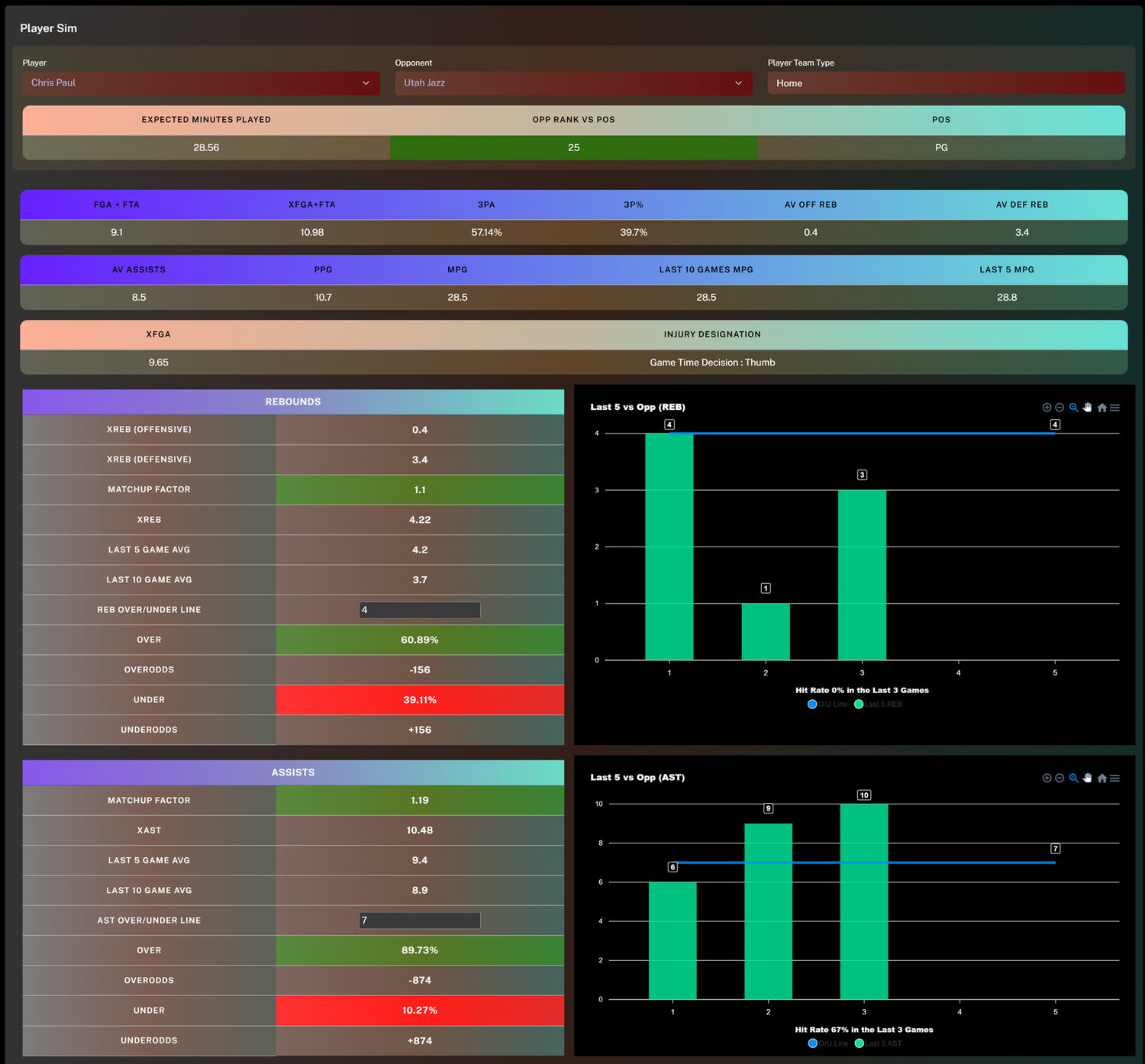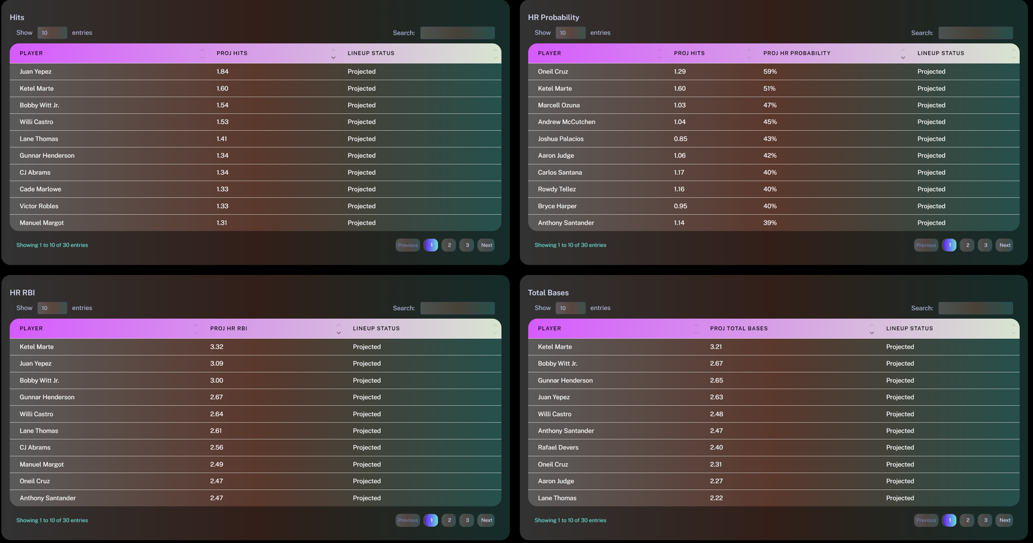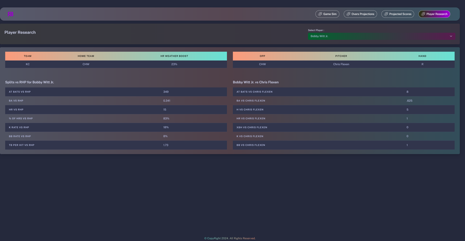 Get advanced projections for every single player, in every single game, for every single stat category!